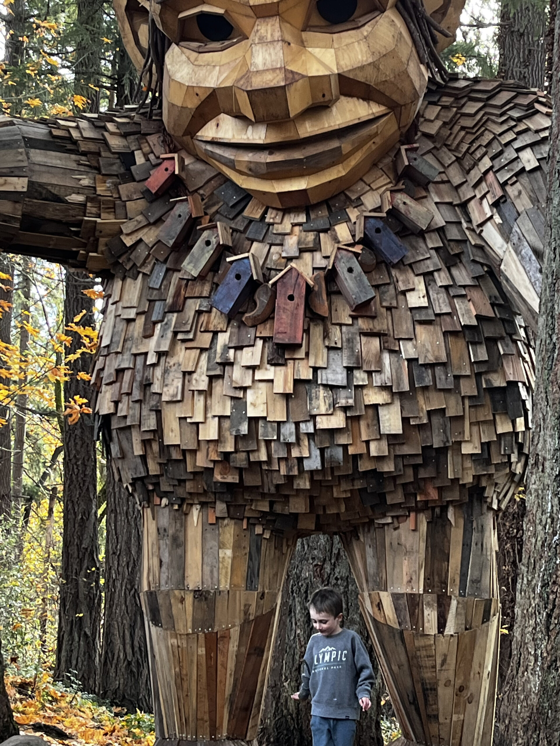 Much has been written (including here) about the Thomas Dambo trolls that now reside in the Seattle area. If you haven’t seen one in person, you are too close to Jakob Two Trees to not take advantage of the opportunity to stop and visit him.