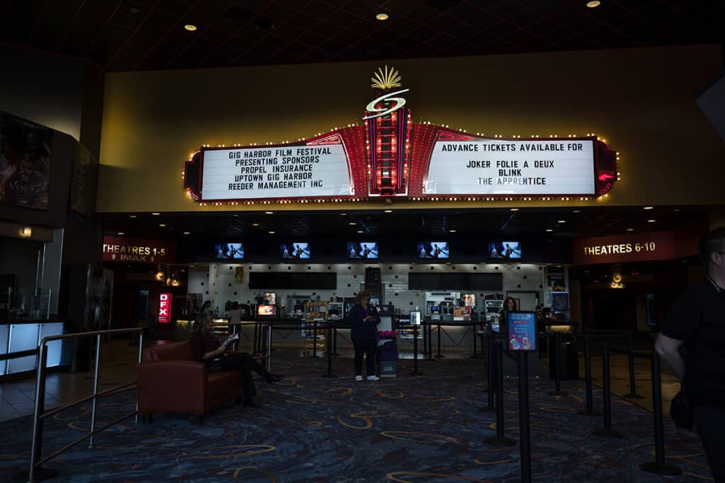 The marquee inside the Galaxy Theatres Uptown during the Gig Harbor Film Festival. Photo by Angie Mitchell Photo.