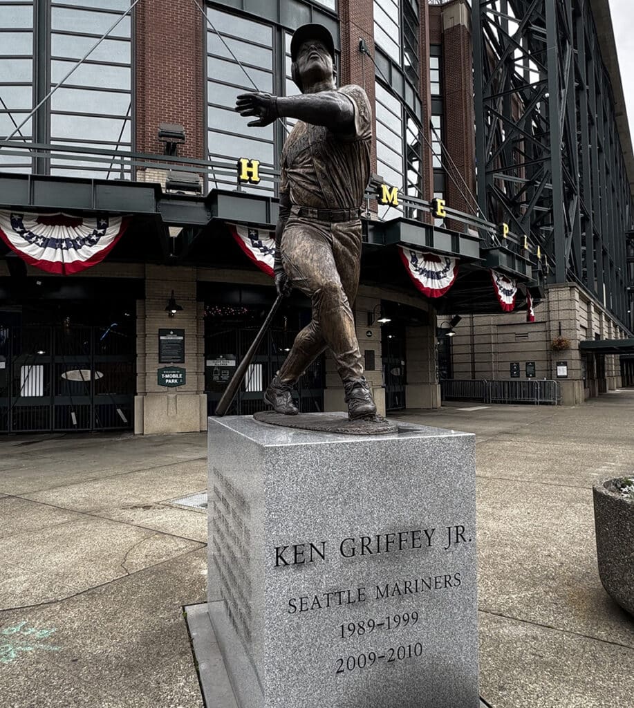 - In April 2017, sculptor Lou Cella unveiled a statue of Ken Griffey Jr. outside the main entrance to the ballpark. Just up the street is a bronze statue of Edgar Martínez, also by Cella. A statue of Ichiro will be unveiled in 2026.