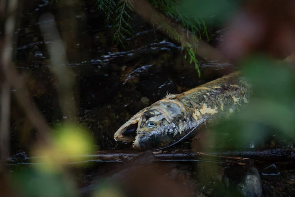 A dead salmon lies in the creekbed. Photo by Carolyn Bick. © Carolyn Bick