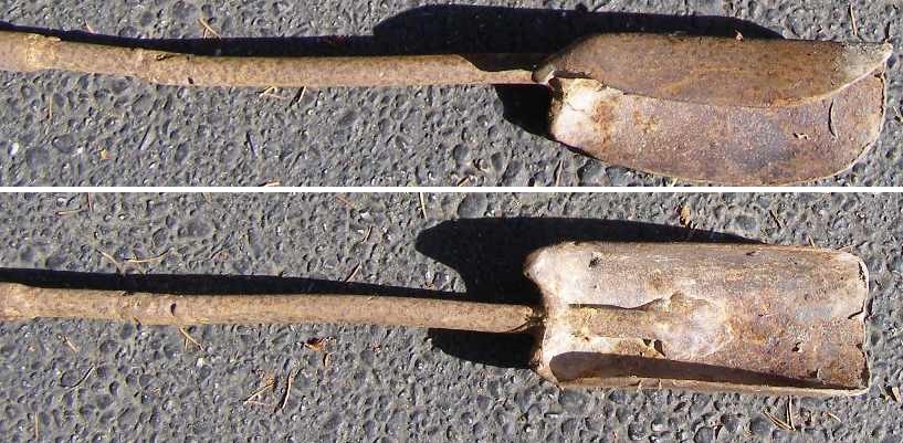 It’s obviously a tool of some sort. It’s equally obvious that it is homemade. It’s 75 inches long, made of three pieces of increasing-diameter scrap steel pipe welded end-to-end, with a three-inch-wide, seven-inch-long scoop welded to the end of the smallest diameter piece. The tool had one, specific, use.