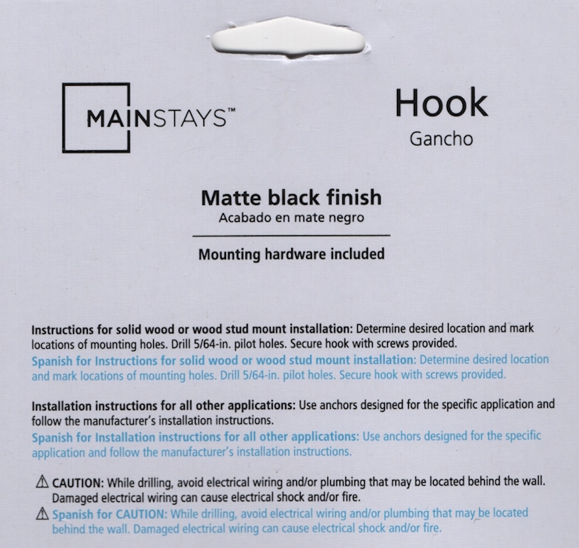 Printed in small font on the back of the packaging of a simple coat hook is a leap in linguistics technology that took me completely by surprise. With no knowledge of Spanish, I can actually read the Spanish installation instructions. They are as clear to me as the English instructions.