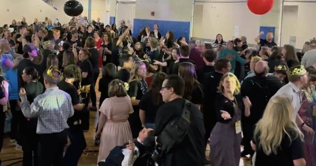 The event includes dancing, food, limo rides, prom photos, karaoke and other fun activities. This year’s Night to Shine is being billed as a Sneakers Ball. Everyone is asked to wear soft-soled sneakers – decked out with colorful paint, baubles and other bright, shiny embellishments – or plain, unadorned sneakers. Just no dress shoes this year, please.