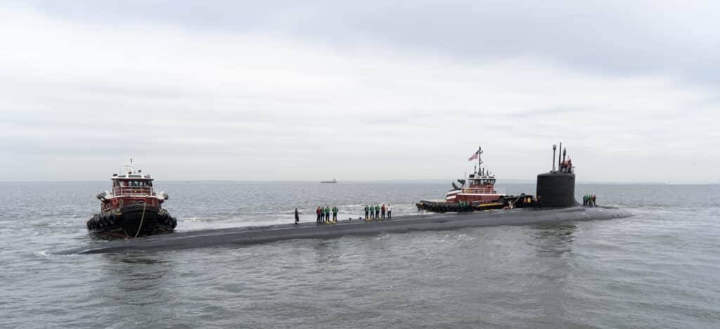The Virginia-class submarine USS New Jersey pulls into Naval Weapons Station Earle in New Jersey on Sept. 6, 2024. U.S. Navy Photo By Bill Addison/released