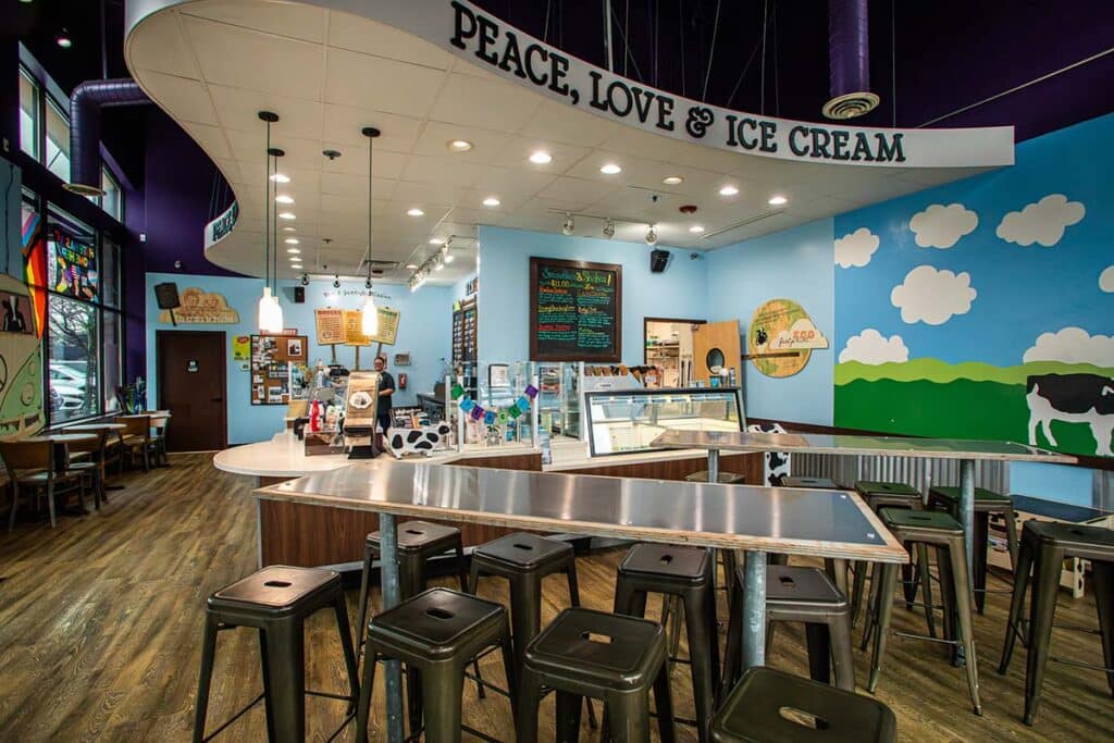 The Ben & Jerry’s in Uptown Gig Harbor remained open during the National Shutdown, but will donate proceeds from an upcoming day to a nonprofit supporting immigrants. Photo by Julie Warrick Ammann