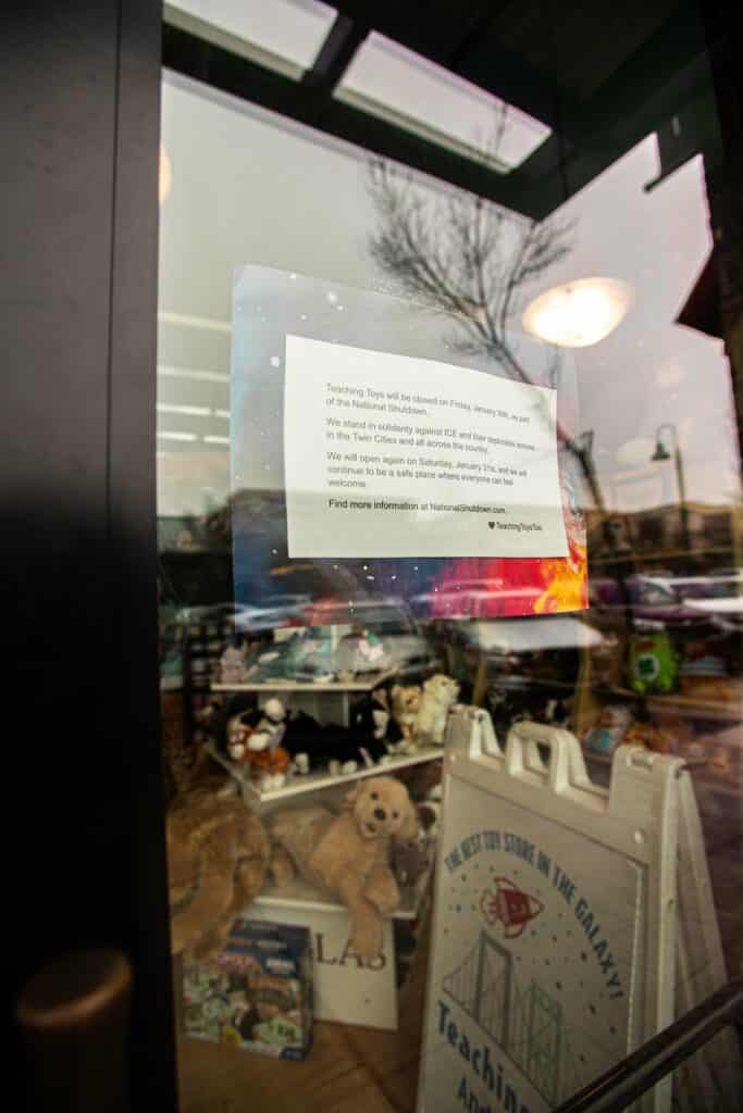 “Teaching Toys will be closed on Friday, January 30, as part of the National Shutdown. We stand in solidarity against ICE and their deplorable actions in the Twin Cities and all across the country. We will open again on Saturday, January 31, and we will continue to be a safe place where everyone can feel welcome. Find more information at NationalShutdown.com.”