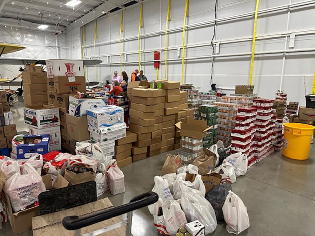 Donations of canned goods and all the fixings that make a Thanksgiving meal are donated for the Basket Brigade. Boxes are then filled with everything needed for a full meal and delivered to families in need in Gig Harbor, Key Peninsula, Port Orchard, Joint Base Lewis McChord, and Naval Base Kitsap. The Basket Brigade will serve 800 families this year. Photo courtesy of Greater Gig Harbor Foundation
