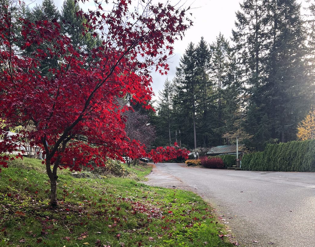 Fall brings a beauty all its own, with maples and Pacific dogwood leaves revealing a crimson hue. The vibrant yellow of ginkgo, birch and aspen dot the landscape.