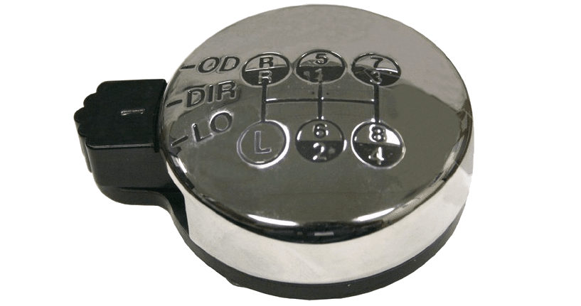 A typical 13-speed Road Ranger shift knob. The sliding button is in the direct-drive position.
