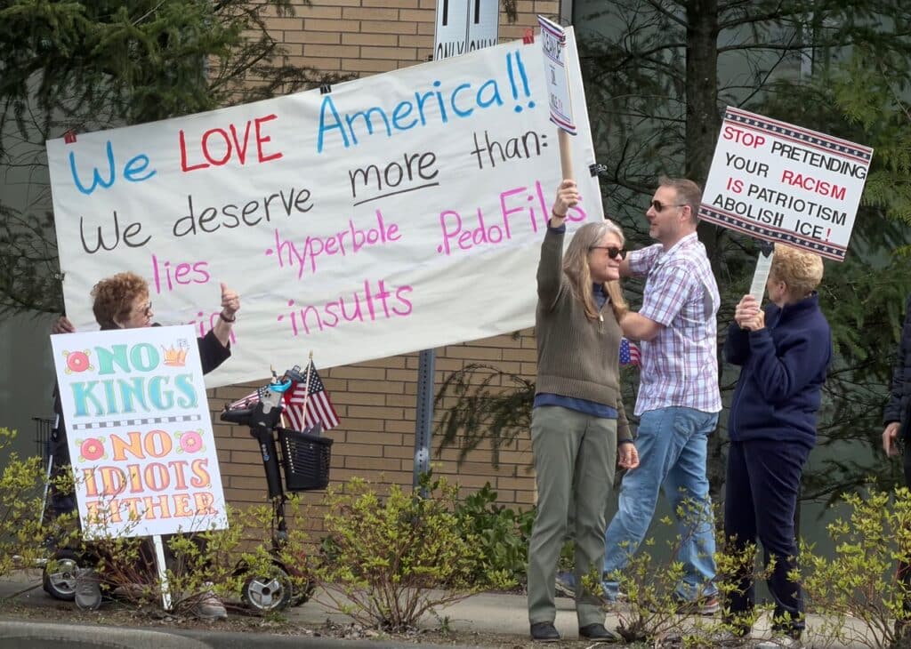 A lively, good-humored, non-violent crowd of several thousand Gig Harbor-area residents clogged the sidewalks of one of the town’s major crossroads Saturday afternoon, a local expression of the day’s nationwide “No Kings” protests.