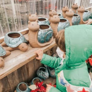When we adventure to a local business, I always like to buy at least one thing. So we purchased a snail planter. And a hedgehog planter – for good measure. Ok, and some fairy garden doors. 🙂