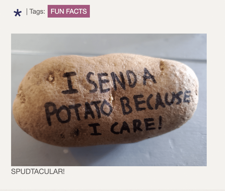 - Potatoes: Say what now? It appears that people actually write their address on it, weigh it, slap on the postage, and off it goes. The Postal Service says of this: “Let someone know they are special. Send a tater.” … Aaaand I just cannot improve on that marketing angle. Plus, just knowing that some postal worker, somewhere, has gently placed a potato next to a birthday card means we’re all better equipped for life now.