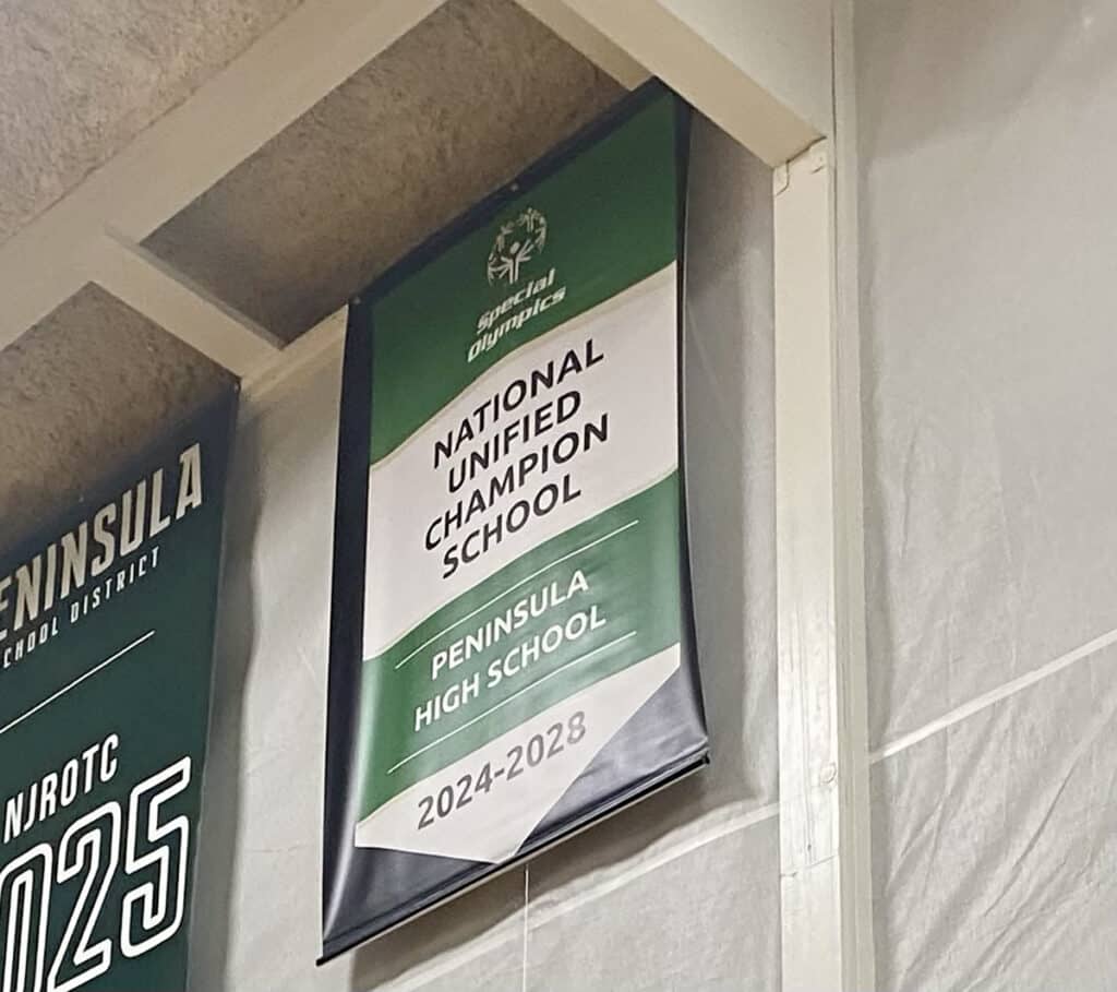 Peninsula High School was named a Special Olympics Unified Champion School by Special Olympics North America and ESPN. A banner for the honor was unfurled in the gym during a celebration on Dec. 12, 2025.