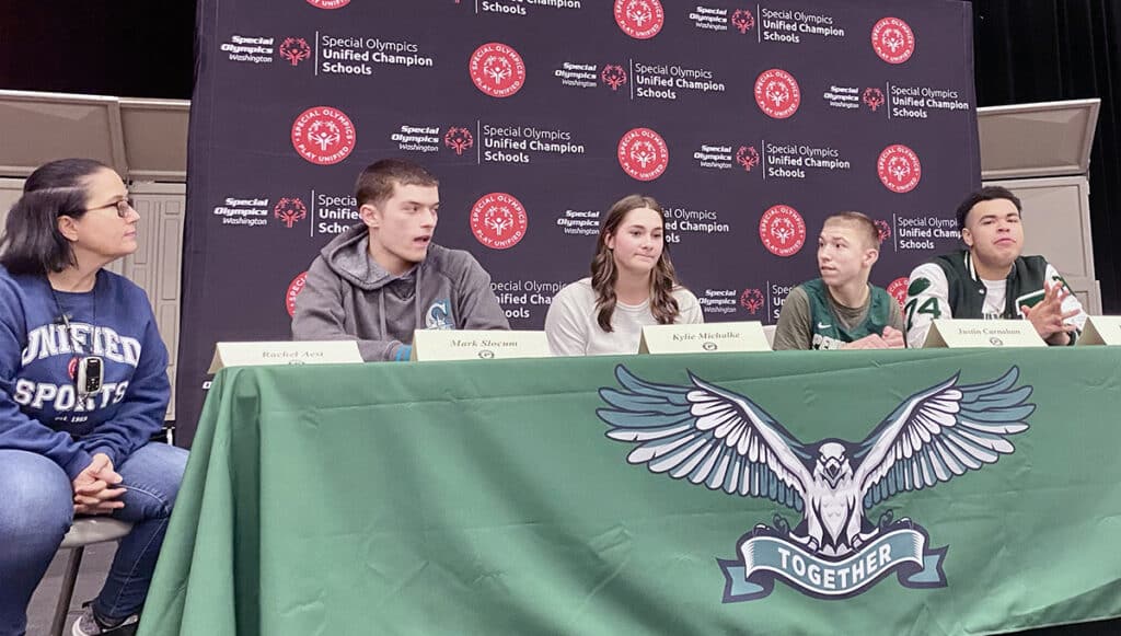 “You’re really shifting what normal looks like at your school,” said Morgan Larche, director of Unified Schools at Special Olympics Washington. “You’re pushing back, saying that no group is more important than another group. Everybody needs to be recognized for who they are. Nobody gets left out. Nobody gets left behind.”