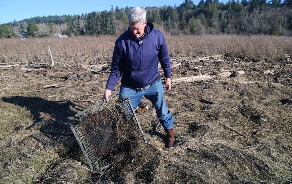 Carl Marlow lifts debris that had been partially concealed by the grass of the Burley Lagoon marshlands. Photo by Vince Dice