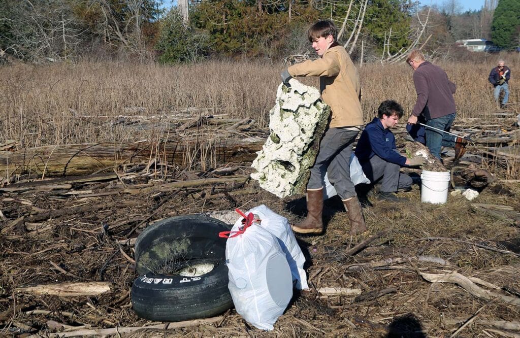 Large pieces of styrofoam in the debris pile following the Burley Lagoon clean-up. Photo courtesy of Carl Marlow