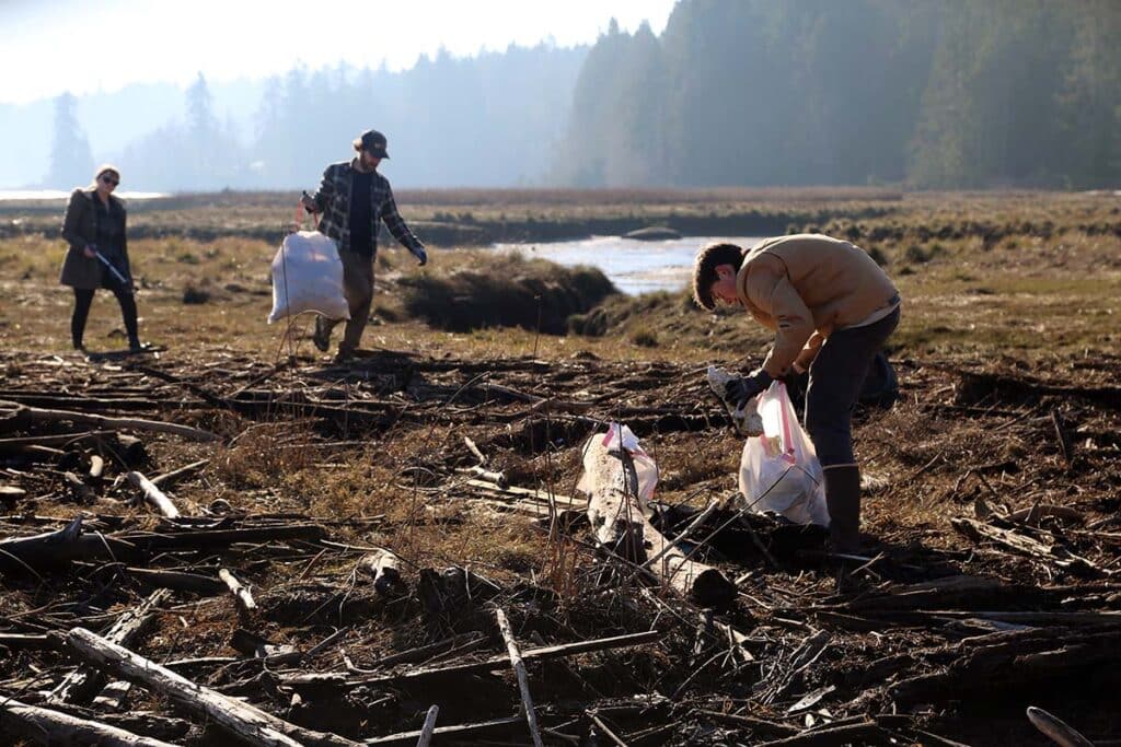 Volunteers fill and haul trash bags during the cleanup on Burley Lagoon. Photo by Vince Dice.