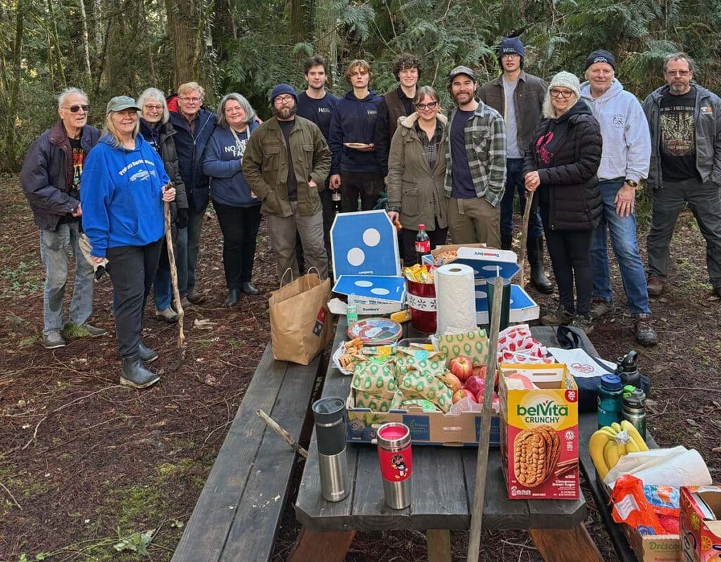 The work crew, including members of the Friends of Burley Lagoon and the Washington Conservation Corps, on a snack break. Photo courtesy of Carl Marlow