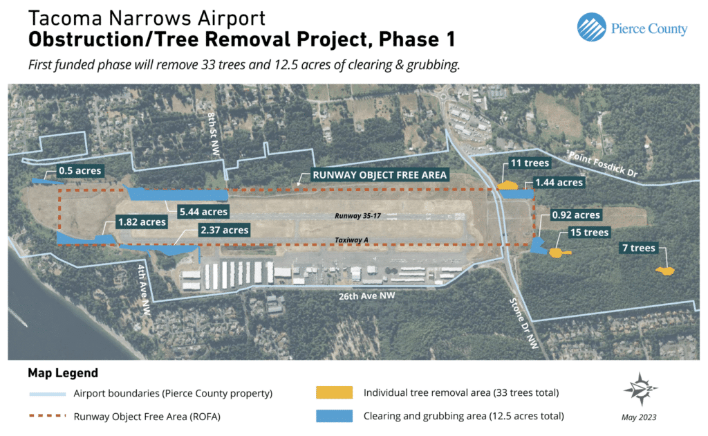 Neighbors of the Pierce County-owned facility received a postcard recently describing Phase 1 of the project. The county sent the cards in late May to about 1,100 residents near the airport, according to Akiko Oda, spokeswoman for the Planning and Public Works Department.