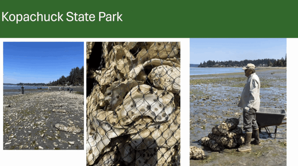 Pacific oysters, he explained, were intentionally introduced to Washington in the late 1800s or early 1900s. They originally hail from Japan. The state and tribal partners co-manage both these oysters and Manila clams.