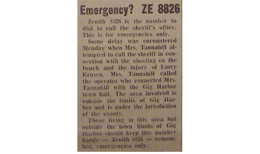 There was no such thing as one-number calling for emergency services in Pierce County in 1968. This clip from the April 11, 1968, Peninsula Gateway was found at the Harbor History Museum.