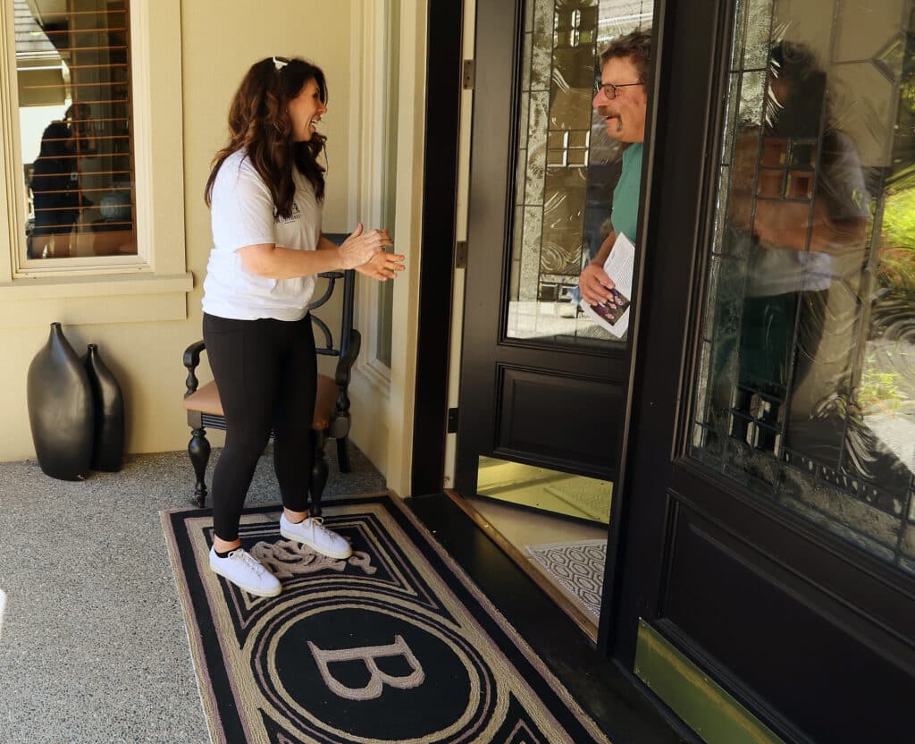 While knocking doors not far from Bremerton High School on a drizzly Monday evening, Deb Krishnadasan reflects on how much her life has changed over the last year.