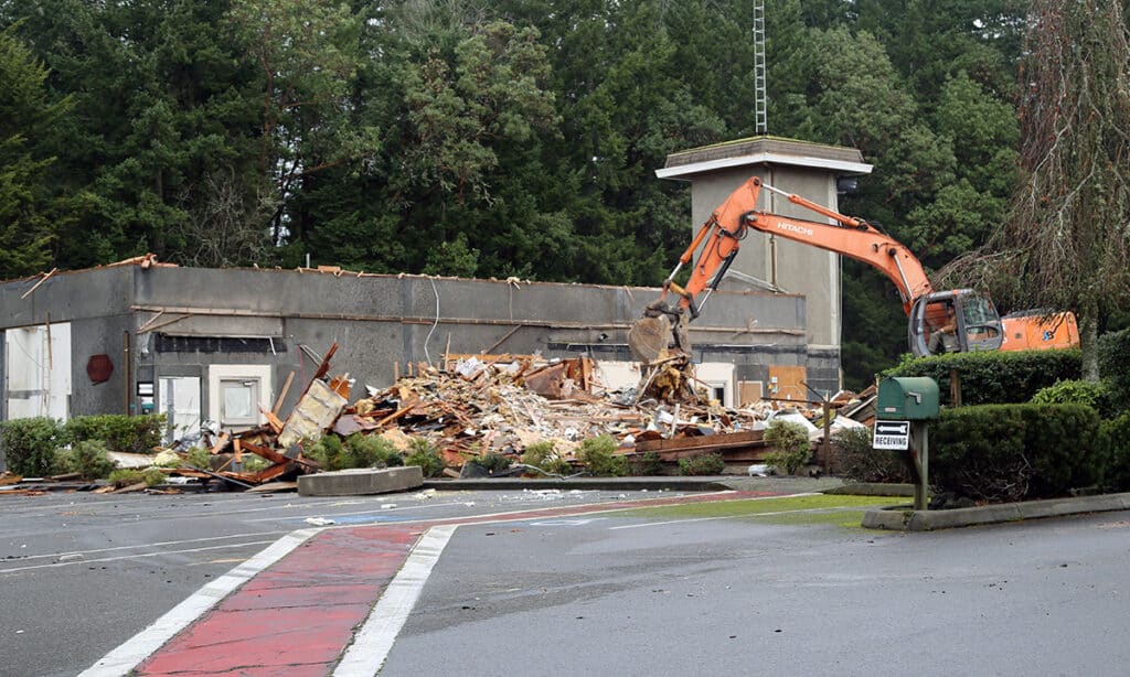 Excavators clear debris at Gig Harbor Fire and Medic One’s Station 51 on Wednesday, Feb. 4, 2025. Photo by Vince Dice