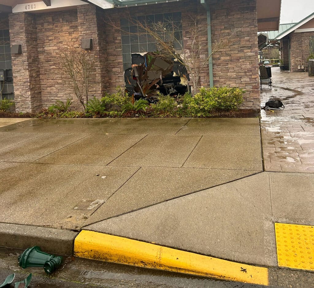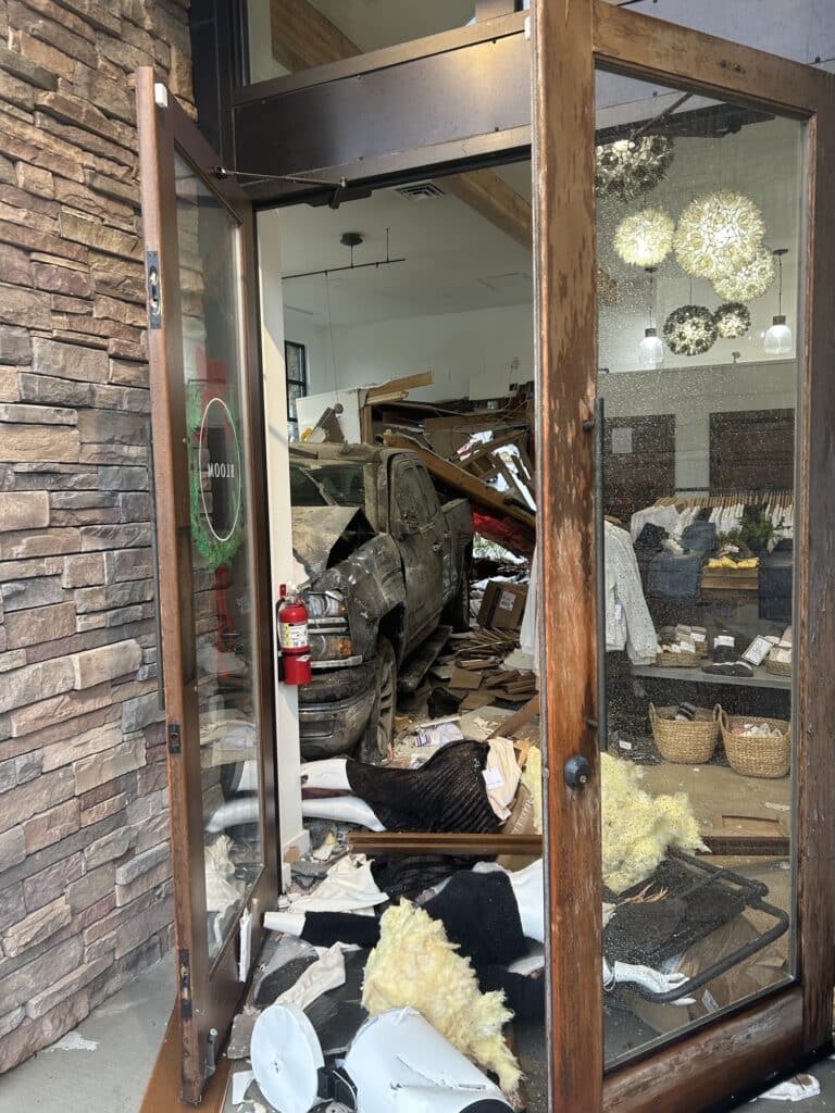 A Chevrolet pickup crashed into the Bloom Boutique store at 4763 Point Fosdick Dr. shortly before 2 p.m., according to a news release from the Gig Harbor Police Department.