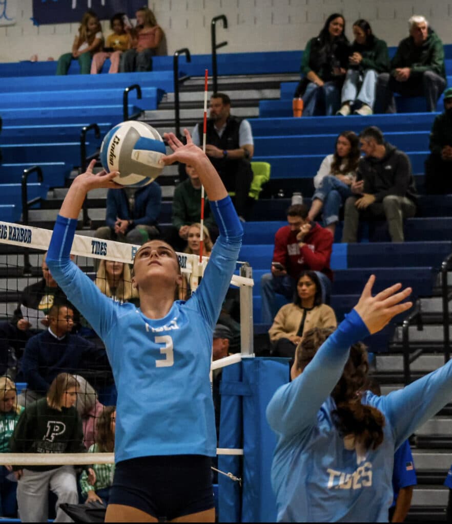 Klein was pleased with the Tides’ service and service return game and liked that his team blocked well and ran their offense through the middle. “Maharry played really well and Anderson had some thunder caps while Ellie Hawkins had some big digs that flipped momentum,” Klein said.