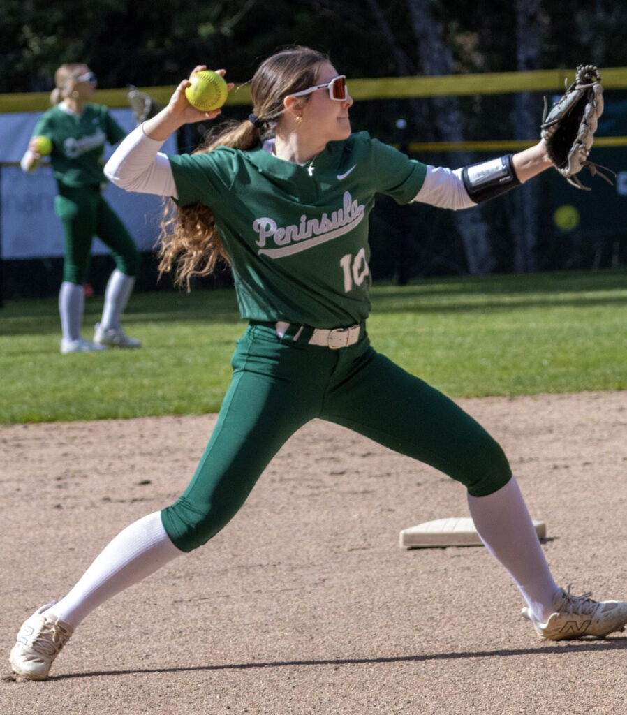 The Peninsula fastpitch team did their crosstown rivals a favor on April 23, knocking off Narrows Division-leading Central Kitsap, 8-2. The Seahawks’ win over the Cougars allowed Gig Harbor to move into a first-place tie in the Narrows.