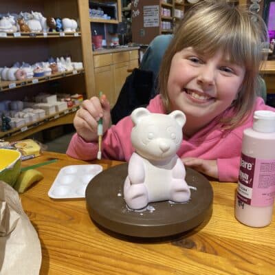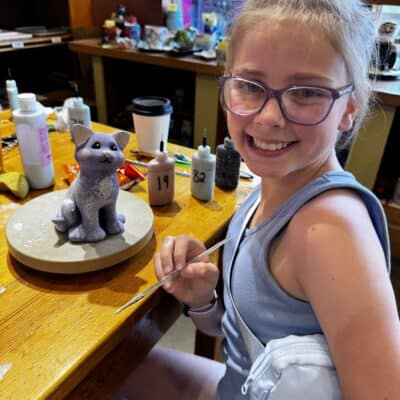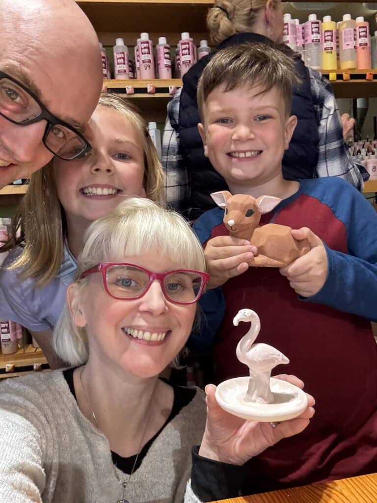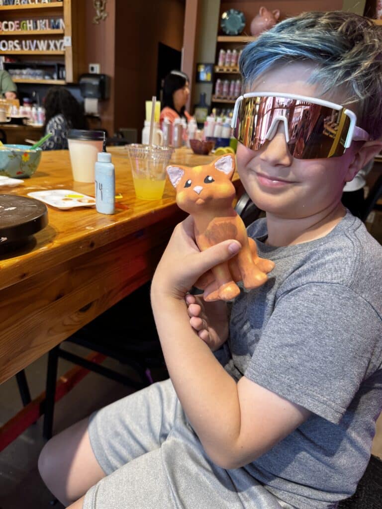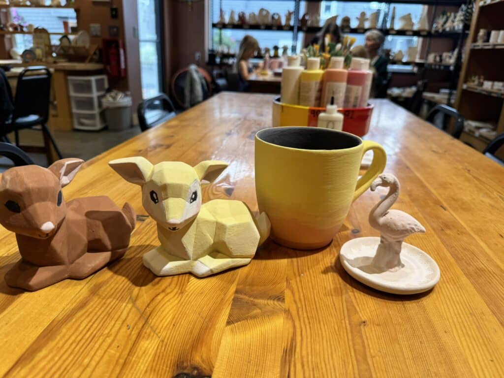 Here’s when we visited in May 2025 with Bowen. We painted two deer, a flamingo ring holder and a mug:
