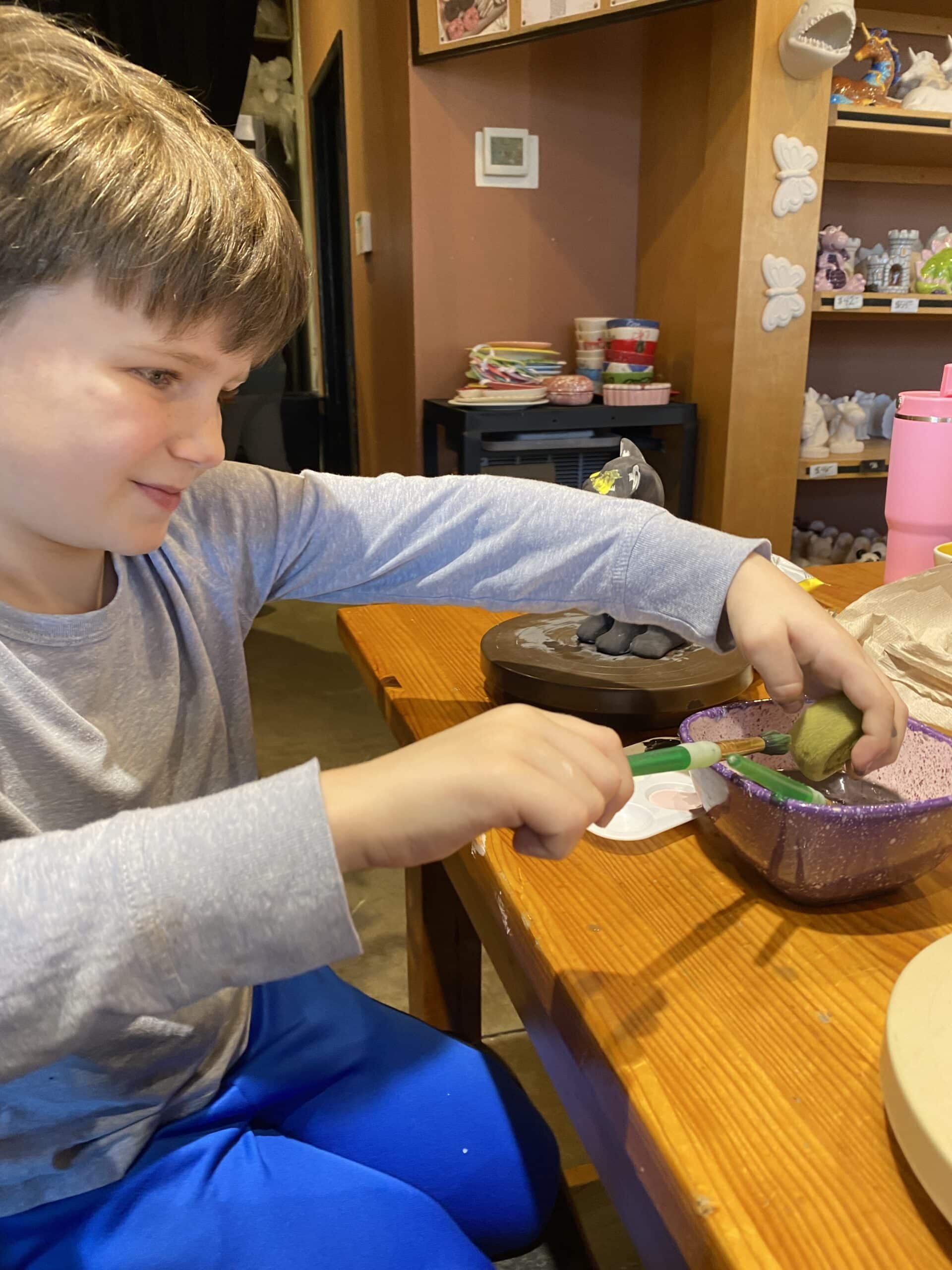 So for today’s column, I’m featuring not one, not two, but three of our latest trips to Java & Clay Cafe right here in Gig Harbor, located along the downtown waterfront. As a paint-your-own ceramics studio and coffee shop, the place is pretty family-friendly, making it a solid option for something to do locally (cough, cough) and indoors with kids on a rainy day.